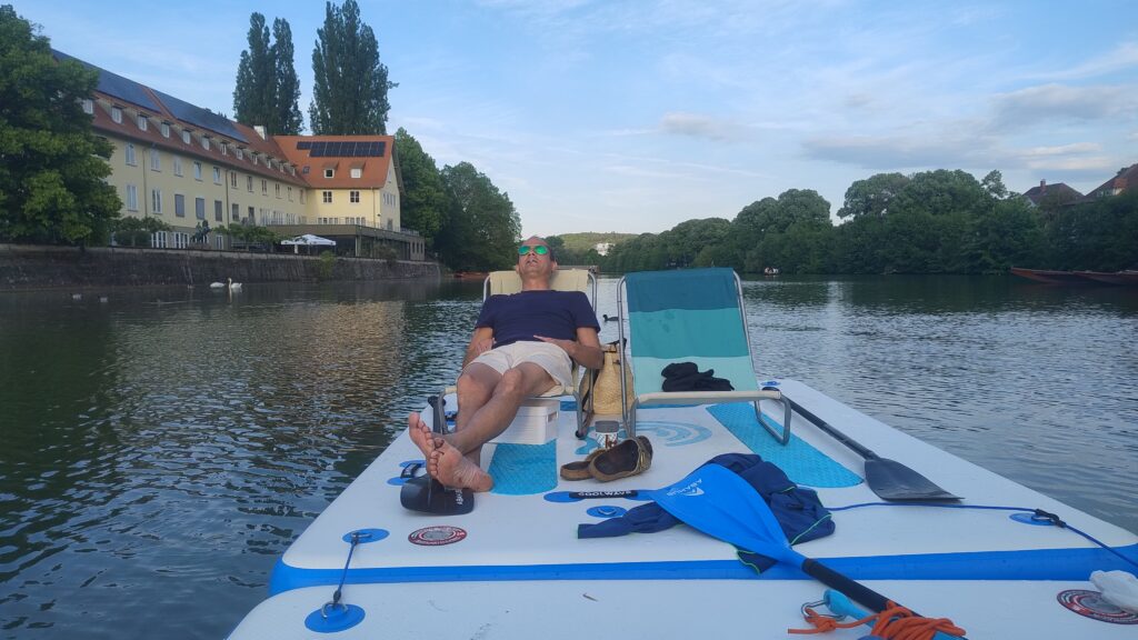 Sonne auf der Haut, Wasser unter den Füßen und pure Entspannung – mit unseren Neckar Islands genießt du absolute Freiheit auf dem Neckar. Paddle gemütlich über den Fluss, lass dich treiben und wirf den Anker, wo es dir am besten gefällt. Perfekt zum Sonnenbaden, Relaxen und einfach mal Abschalten!
